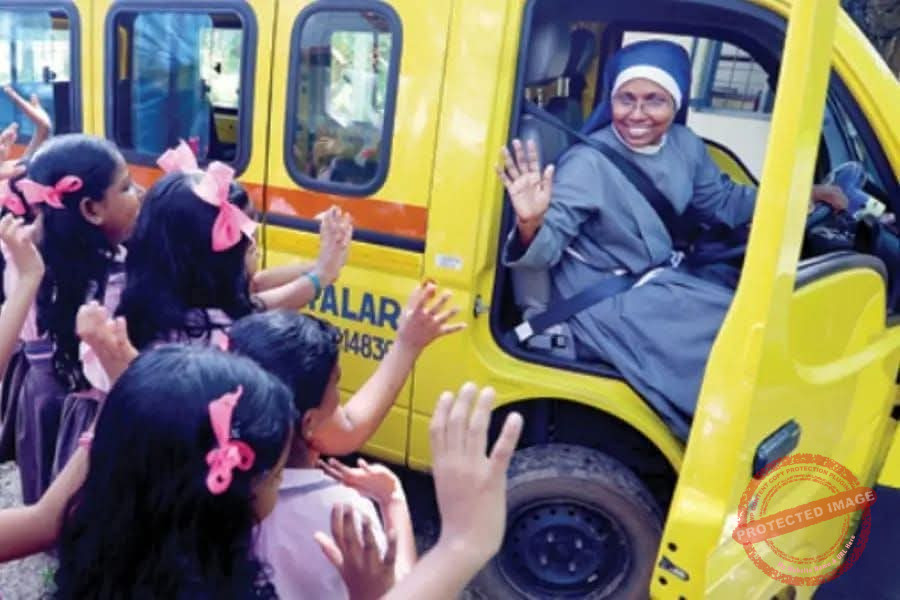 வேனுக்கு தனியாக டிரைவர் அமர்த்தினால் அவருக்கு கொடுக்க வேண்டிய சம்பளத்தின் மூலம் அவரது பெற்றோர்களுக்கு சிரமம் ஏற்படுமே என்று நினைத்த அருட்சகோதரி மேரி போனா தானே வேனை இயக்க முடிவு செய்து கடந்த சில மாதங்களாக அதை செய்து வருகிறார்.