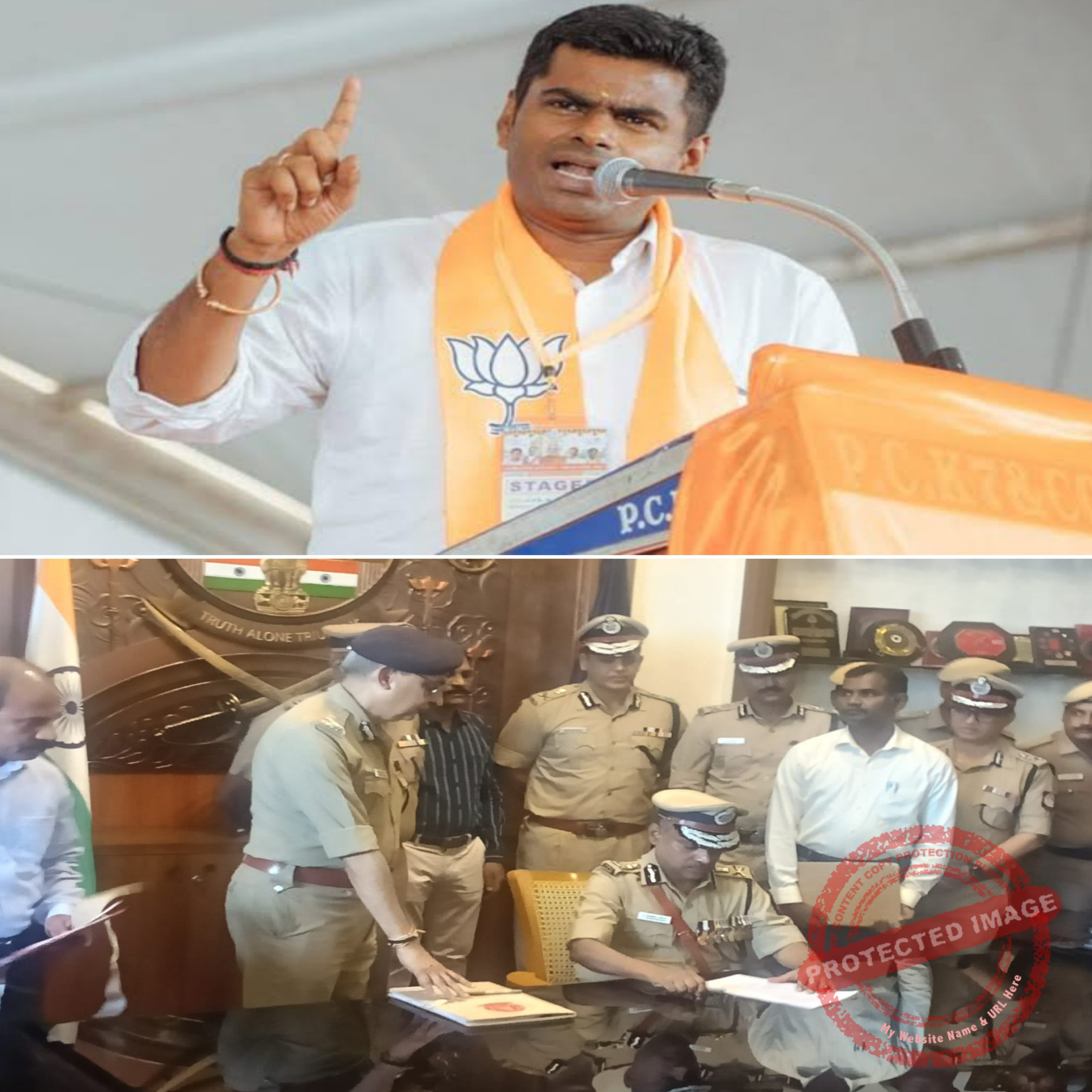 காவல்துறையை சேர்ந்த அதிகாரிகளை தங்களுடைய அரசியலுக்கு பலிகடாவாக்கும் திமுக அரசின் அதிகார துஷ்பிரயோகத்தை வன்மையாக கண்டிக்கிறேன். உங்கள் ஆட்டம் விரைவில் முடிவுக்கு வரவிருக்கிறது என்பதையும், நினைவுப்படுத்திக் கொள்கிறேன்” என்று குறிப்பிட்டுள்ளார்.