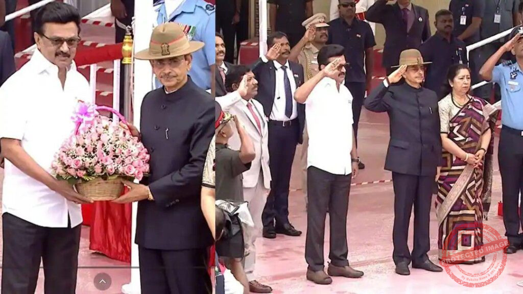 குடியரசு தின விழா கொண்டாட்டம் நாடு முழுவதும் உற்சாகமாக கொண்டாடப்பட்டு வருகிறது. அந்த வகையில் தமிழக அரசின் சார்பில் சென்னை மெரினா கடற்கரை சாலையில் உள்ள உழைப்பாளர் சிலை அருகில் நடத்தப்பட்டது. காலை 07:52 மணிக்கு விழாப் பகுதிக்கு முதலமைச்சர் முத்துவேல் கருணாநிதி ஸ்டாலின் காரின் முன்னும் பின்னும் காவல்துறையின் மோட்டார் சைக்கிள்கள் புடைசூழ அழைத்து வரப்பட்டார். இதனையடுத்து காலை 07:54 மணிக்கு ஆளுநர் ஆர்.என்.ரவியை விமானப்படையினர் மோட்டார் சைக்கிள்கள் புடை சூழ அழைத்து வரப்பட்டார்.