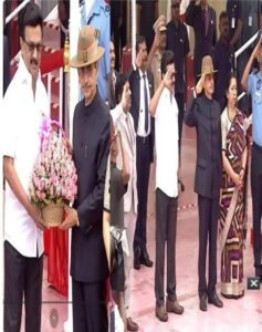 அதைத் தொடர்ந்து காலை 08:00 மணிக்கு அங்கிருக்கும் கம்பத்தில் தேசியக் கொடியை ஆளுநர் ஆர்.என்.ரவி ஏற்றினார் அப்போது அந்தப் பகுதியின் மேல் இந்திய விமானப்படை ஹெலிகாப்டர் பறந்து வந்து மலர் தூவியது. அடுத்தாக ராணுவப்படைப் பிரிவு, கடற்படைப் பிரிவு, ராணுவ கூட்டுக் குழல் முரசிசை பிரிவு, வான்படைப் பிரிவினர் அணி வகுத்து வந்து கவர்னருக்கு வணக்கம் செய்தனர். அதைத் தொடர்ந்து சி.ஐ.எஸ்.எப்., சி.ஆர்.பி.எப்., ஆர்.பி.எப்., தமிழ்நாடு சிறப்பு காவல் பிரிவு, தமிழ்நாடு பேரிடர் நிவாரணப் படை, கடலோர பாதுகாப்புக் குழு, ஊர்க்காவல் படை (ஆண்கள் மற்றும் பெண்கள்) உள்பட 30 படைப்பிரிவினர் அணி வகுத்துச் சென்றது.