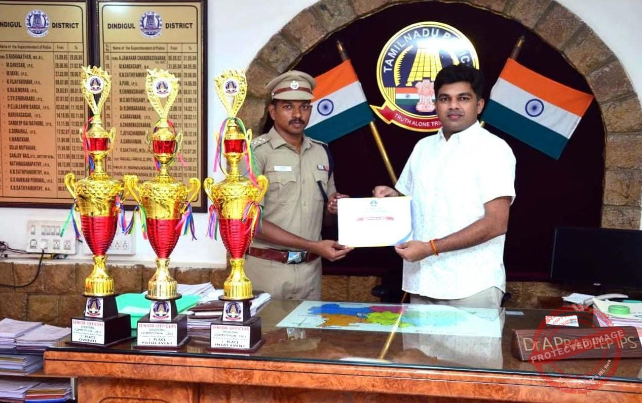 திண்டுக்கல் நகர் DSP.கார்த்திக் PISTOL பிரிவில் முதல் பரிசும், INSAS பிரிவில் முதல் பரிசும், அனைத்து வகையான துப்பாக்கி சுடுதல் பிரிவில் முதல் பரிசும் பெற்றார்கள்.