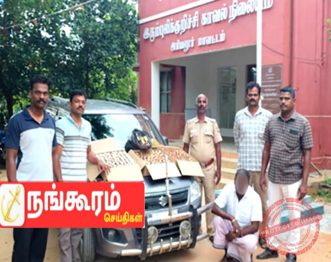 இதன் ஒரு பகுதியாக, (22.08.2025) நாளன்று இரும்புலிக்குறிச்சியில் நடைபெற்ற வாகன சோதனையில், காரில் கடத்தி வரப்பட்ட 300 பாண்டிச்சேரி மதுபான பாட்டில்கள் பறிமுதல் செய்யப்பட்டன. இந்தக் கடத்தலில் ஈடுபட்ட உஞ்சினி கிராமத்தைச் சேர்ந்த பிரபு (வயது 40) கைது செய்யப்பட்டார்.