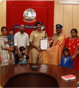காவல்துறையில் பணிபுரிந்து இந்த மாத இறுதியில் ஓய்வில் செல்லவிருக்கும் உதவி ஆய்வாளர் திரு. ராஜாங்கப் பெருமாள் மற்றும் தலைமை காவலர் திரு. பொன் அருள் ஜோதி அவர்களுடைய குடும்ப உறுப்பினர்களுடன் மாவட்ட காவல் அலுவலகத்தில் வைத்து மாவட்ட காவல் கண்காணிப்பாளர் டாக்டர். ஆர். ஸ்டாலின் IPS அவர்களுடன் கலந்துரையாடினார்.