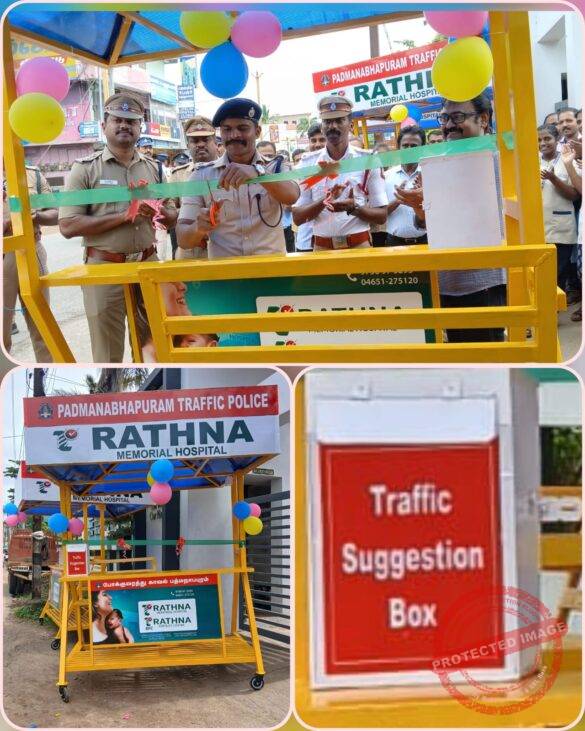 மேலும், பொதுமக்கள் தங்களது போக்குவரத்து சம்பந்தப்பட்ட குறைகளை காவல் அதிகாரிகளுக்கு எளிதாக தெரிவிக்க போக்குவரத்து குறைவாக்கும் பெட்டி Traffic Suggestion Box அமைக்கப்பட்டது.இதன் மூலம் வரும் மனுக்களை பத்மனாபபுரம் போக்குவரத்து காவலர்கள் ஆய்வு செய்து உடனடியாக தீர்வு தரப்படும் விதமாக இது அமைக்கப்பட்டுள்ளது.