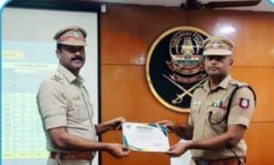 சிறப்பாக பணியாற்றிய காவலர்களுக்கு எஸ்பி சிலம்பரசன் பாராட்டு சான்று வழங்கி கௌரவிப்பு