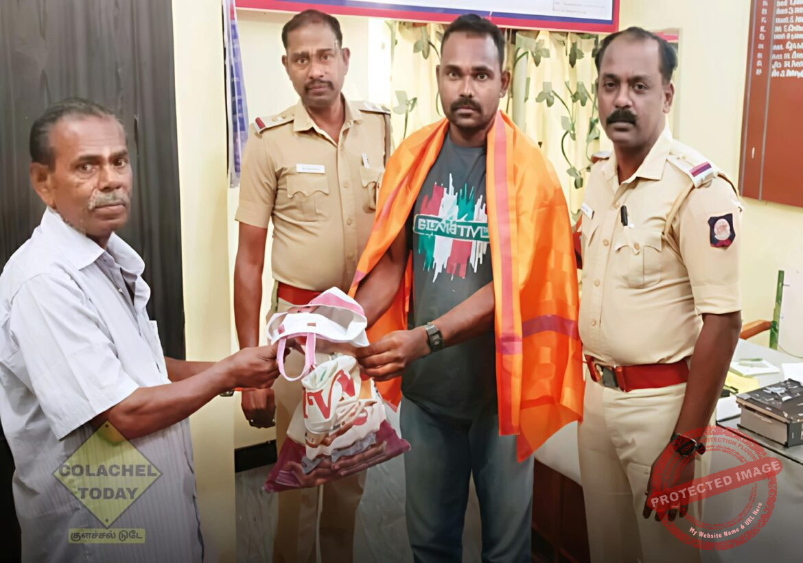 அந்த பையை அவர் ஆரல்வாய்மொழி காவல் நிலையத்தில் ஒப்படைத்தார். பையில் இருந்த செல்போன் மூலம் பையை தவற விட்டவர் கண்டுபிடிக்கப்பட்டு பணத்தை தொலைத்த நபரை காவல் நிலையம் வரச்சொல்லி அவரிடம் அந்த பணம் ஒப்படைக்கப்பட்டது.