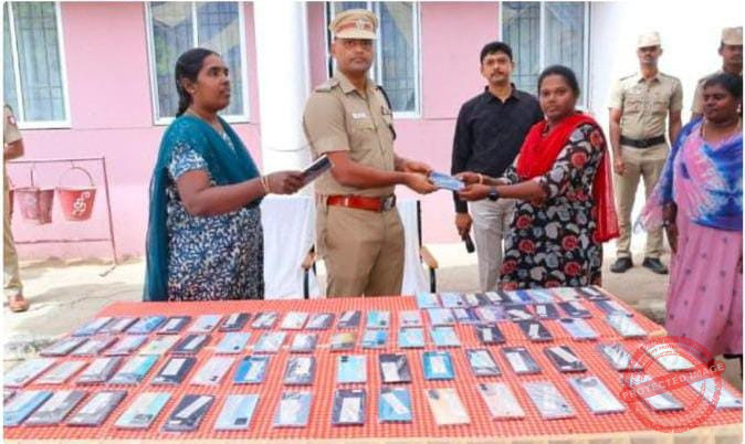 திருநெல்வேலி மாவட்டத்தில் காணாமல் போன கைபேசிகளை கண்டுபிடிக்க மாவட்ட காவல் கண்காணிப்பாளர் சிலம்பரசன் உத்தரவின் பேரில் சைபர் கிரைம் போலீசார் தீவிர நடவடிக்கை எடுத்து வந்த நிலையில், 100 கைபேசிகள் கண்டுபிடிக்கப்பட்டன. மேற்குறிப்பிட்ட கைபேசிகளை மாவட்ட காவல் கண்காணிப்பாளர் சிலம்பரசன் நேரடி கண்காணிப்பில்,சைபர் கிரைம் பிரிவு கூடுதல் காவல் கண்காணிப்பாளர் முருகன் மேற்பார்வையில்,காவல் ஆய்வாளர் ரமா தலைமையில் கைபேசிகள் காணாமல் போனதாக பெறப்பட்ட புகார்களில் 100 கைபேசிகள் கைப்பற்றப்பட்டு மாவட்ட காவல் கண்காணிப்பாளர் சிலம்பரசன் உரியவர்களிடம் ஒப்படைத்துள்ளார்.