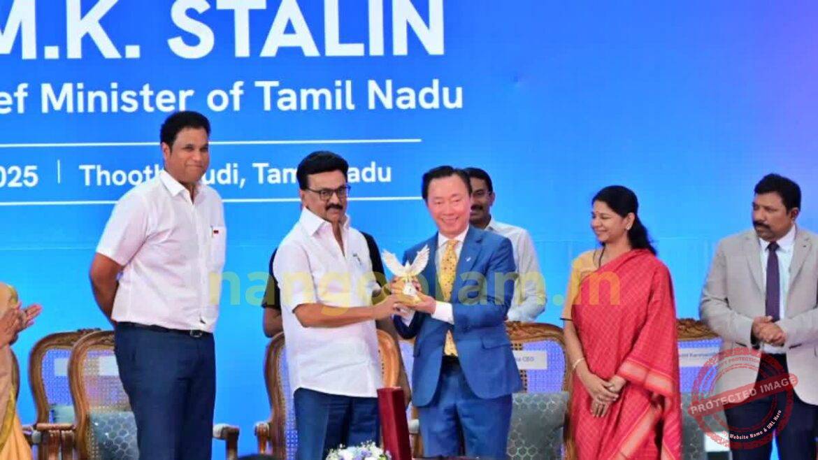 தூத்துக்குடியில் நடைபெற்ற முதலீட்டாளர்கள் மாநாட்டில் முதல்வர் மு.க. ஸ்டாலின் முன்னிலையில் ரூ.32,554 கோடி புரிந்துணர்வு ஒப்பந்தங்கள் கையெழுத்தானது.